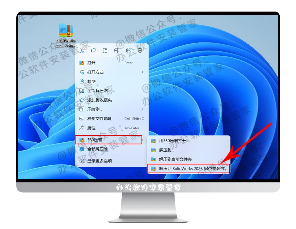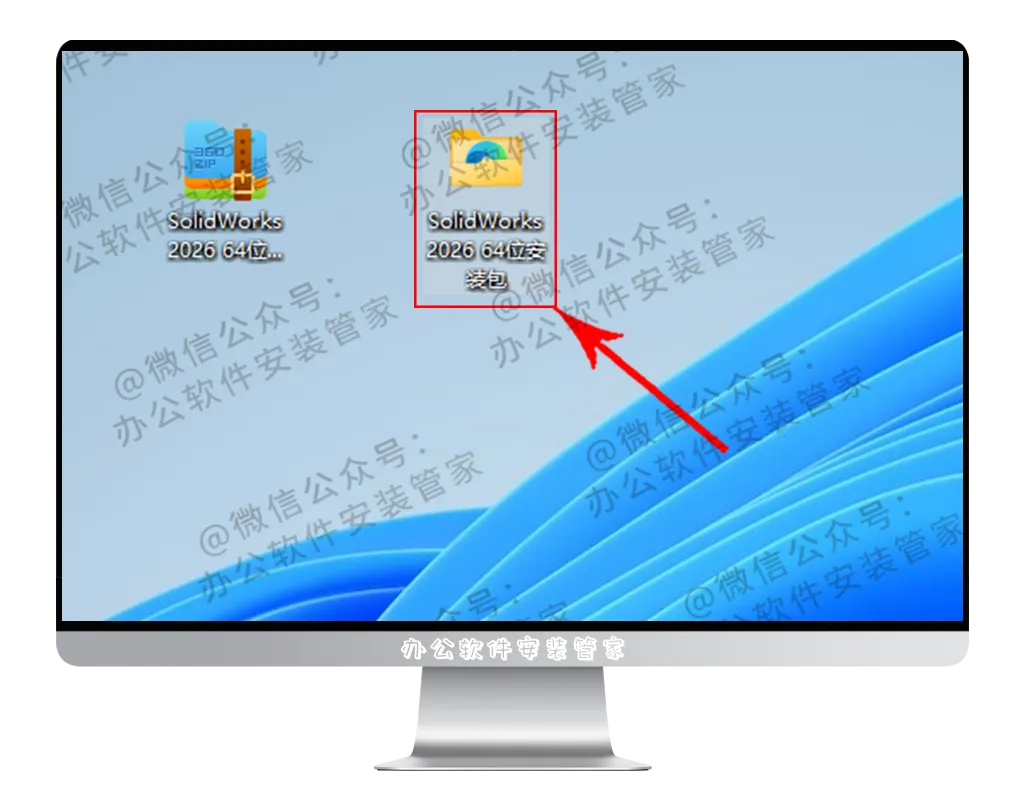 1.找到并选择已下载好的 【SolidWorks 2026 64位安装包】 压缩包并进行解压操作