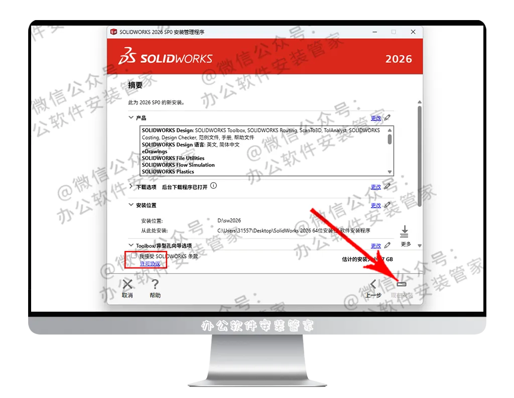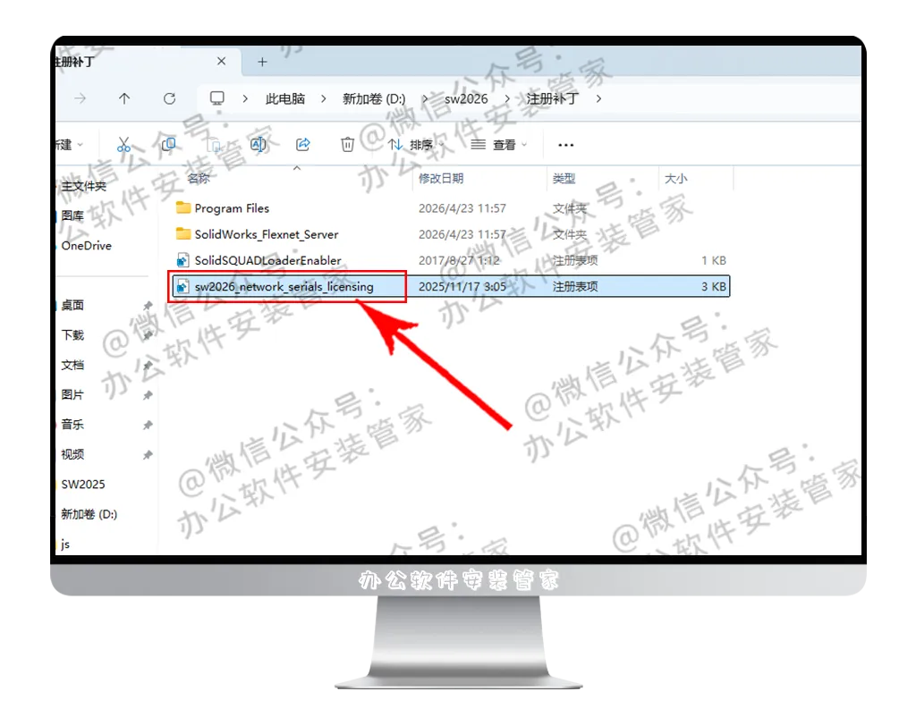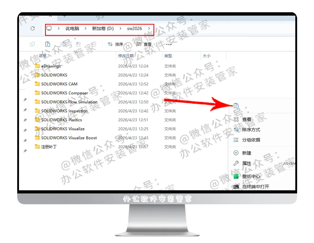 也就是第4步在D盘新建的【SW2026】文件夹里面