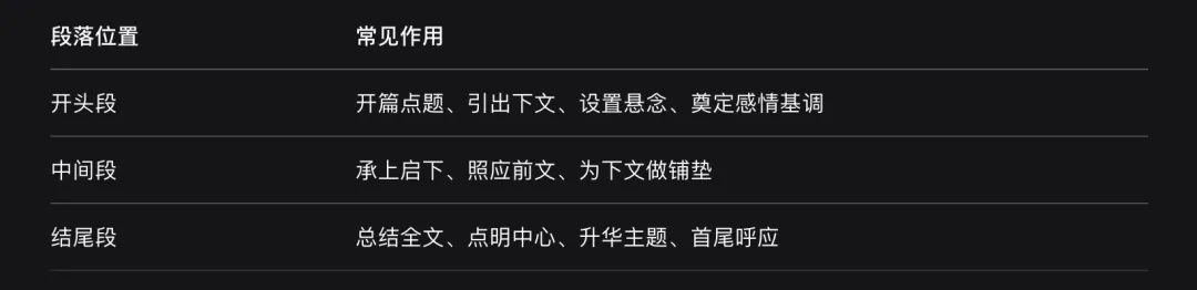 “文章第X段在文中有什么作用?”