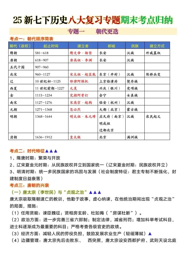 今日分享七下历史期末复习八大考点归纳(完整电子版可打印)!高清可打印,每日轻量练习,拒绝无效刷题,用系统化资料筑牢学科基础,让假期成为提升的黄金期,开学轻松领跑。