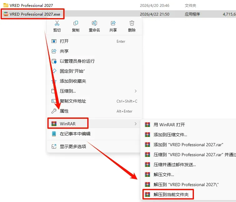 1.选中下载的压缩包,然后鼠标右键选择“解压到当前文件夹”(没有解压选项点这里)