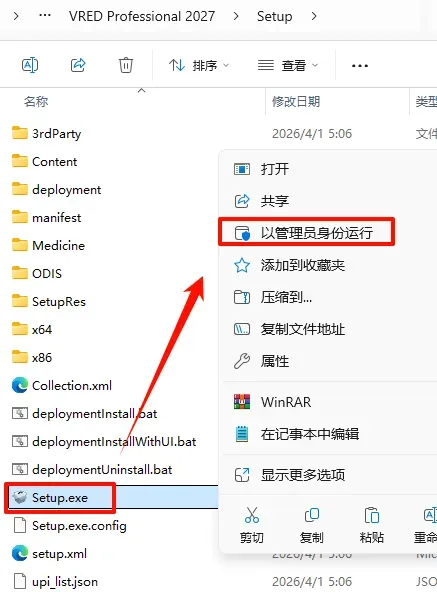 2.打开刚刚解压的文件夹,双击打开“Setup”文件夹,鼠标右键点击“Setup.exe”选择“以管理员身份运行”
