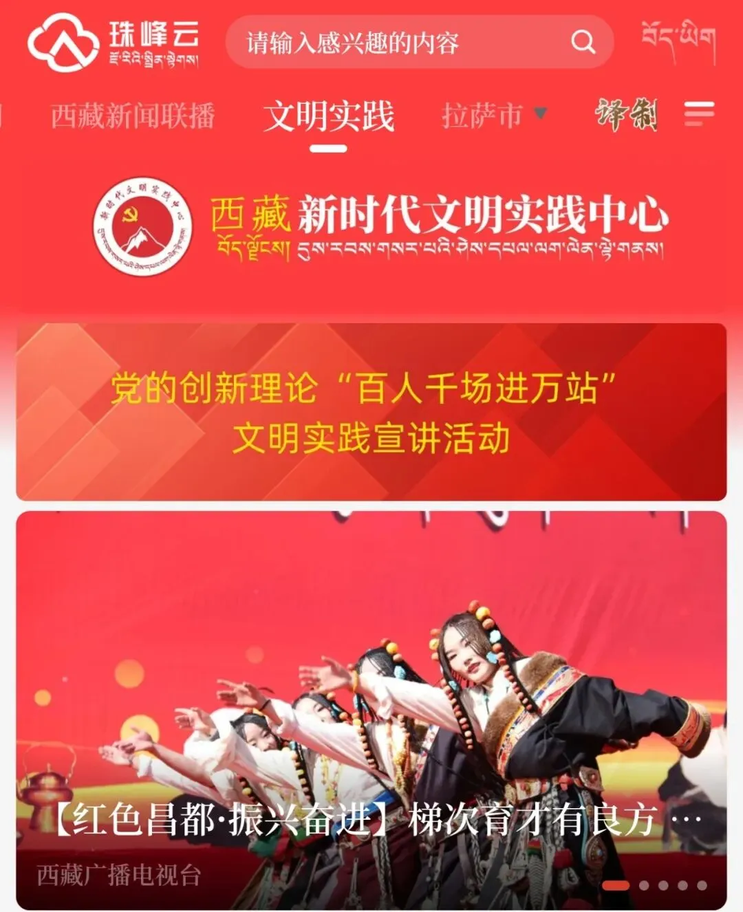 为持续深化新时代文明实践中心建设,进一步拓宽文明实践宣传渠道,延伸文明实践触角,精准高效服务基层群众,让西藏各族群众随时随地掌握新时代文明实践工作动态、参与文明实践活动、汲取文明养分,近日,珠峰云APP全新开辟“新时代文明实践”频道,以数字化平台为载体,推动西藏新时代文明实践工作走深走实、落地见效。