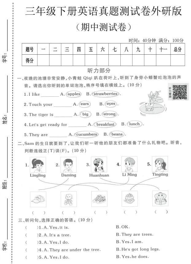 大家好,今天欣妈给大家分享的是:快要期中考试了,2026春三年级外研版英语期中模拟检测卷已发布,电子版可下载打印。通过这次测试能够查漏补缺,梳理知识点,总结做题方法,提升答题准确率,家长们给孩子打印出来,测试完成后对照答案,及时订正!