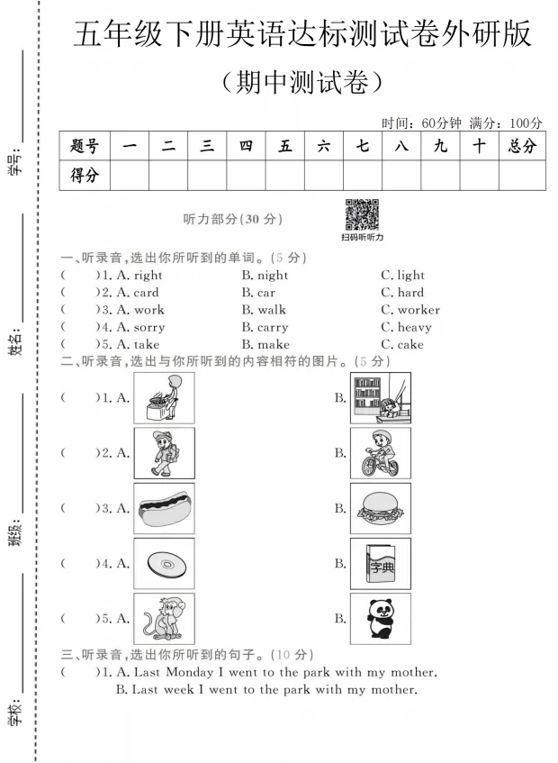 大家好,今天欣妈给大家分享的是:快要期中考试了,2026春五年级外研版英语期中模拟检测卷已发布,电子版可下载打印。通过这次测试能够查漏补缺,梳理知识点,总结做题方法,提升答题准确率,家长们给孩子打印出来,测试完成后对照答案,及时订正!