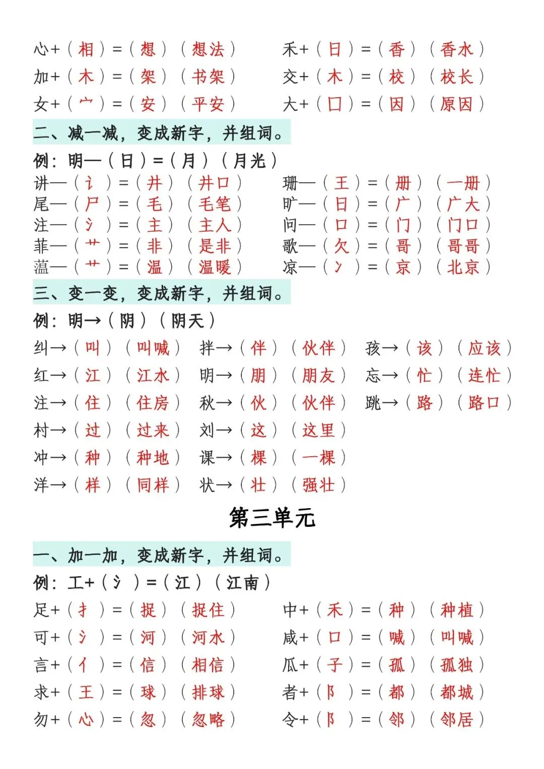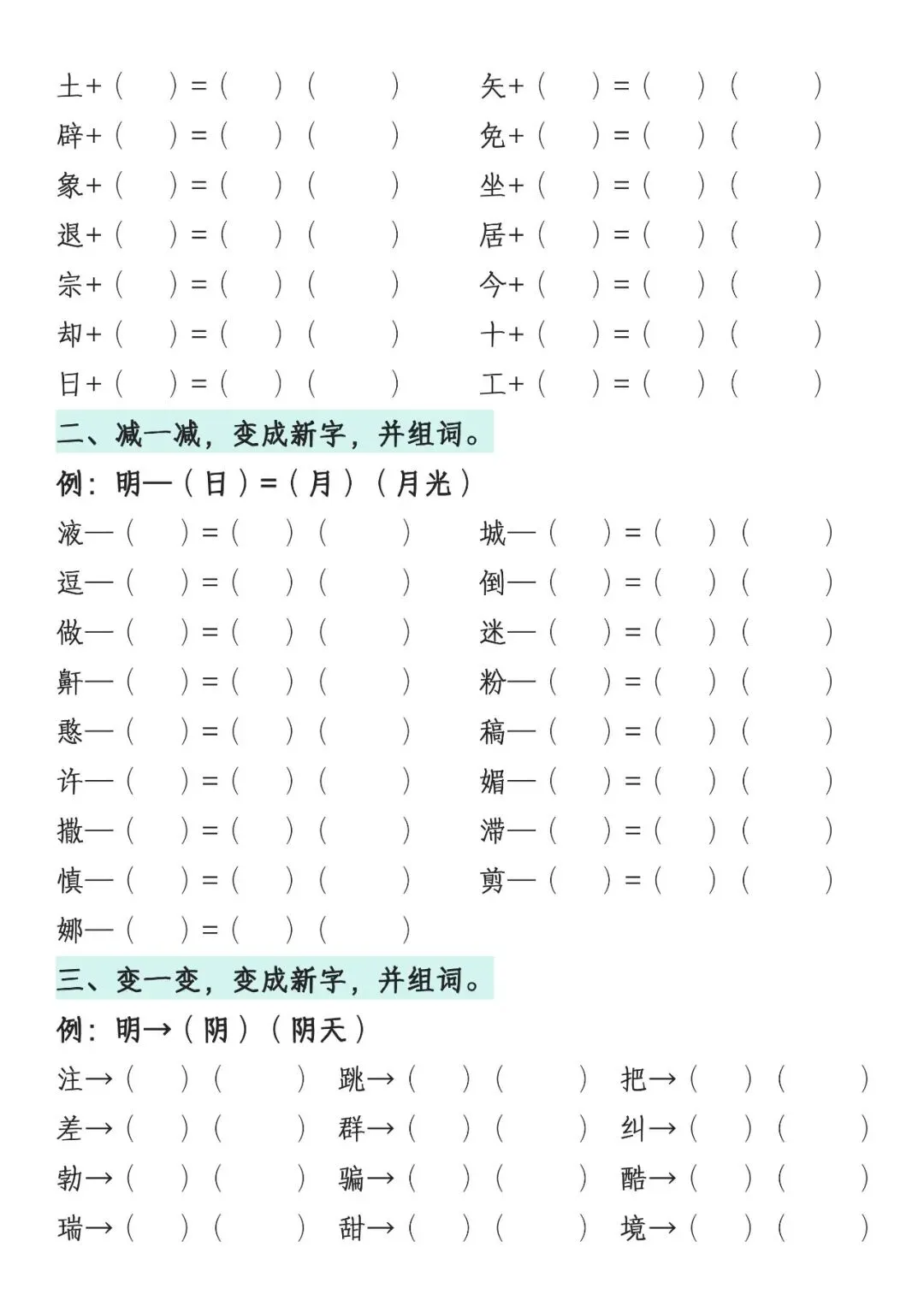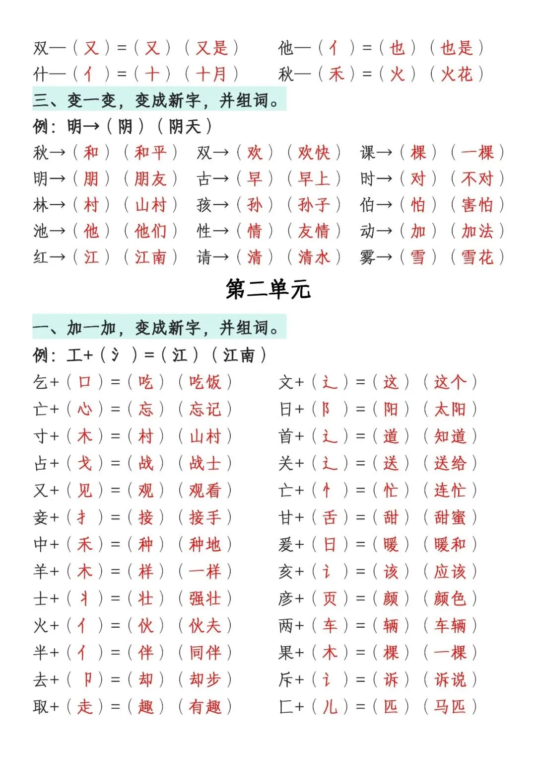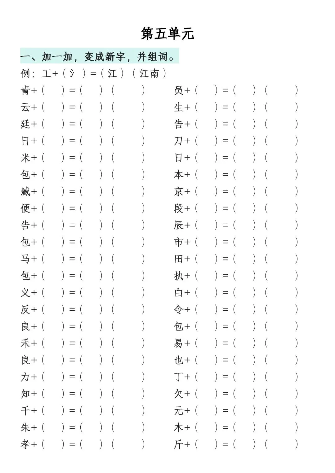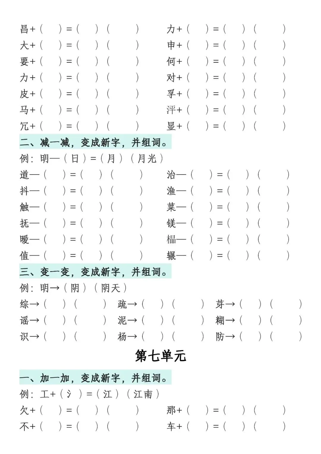 一年级语文下册1-8单元偏旁部首专项训练可打印份大家好,这里是淘学学资料库,这份《一年级语文下册 1-8 单元偏旁专项练习》,完整 pdf 电子档共22页。这份资料按 1-8 单元编排,包含加一加、减一减、变一变三种偏旁造字题型,通过偏旁组新字、组词练习,帮助孩子掌握汉字构造规律,牢固识记生字,提升识字效率。这份专项练习紧扣课本偏旁知识点,题型经典、针对性强,每道题都能强化孩子对偏旁部首的理解与运用,系统夯实汉字基础,有效提升认字、写字、组词能力,适合日常巩固、单元复习和考前查漏补缺,是一年级下册识字认字的必备练习资料。(公众号底部菜单查看完整pdf获取方式)01截图预览(因篇幅有限,仅展示部分内容)02文件目录一年级语文下册1-8单元偏旁专项练习.PDF (22页)03获取方式公众号底部菜单查看完整pdf获取方式END