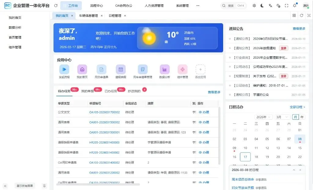 🌐 官网:http://ruoyioffice.com schedule-workbench-home.png