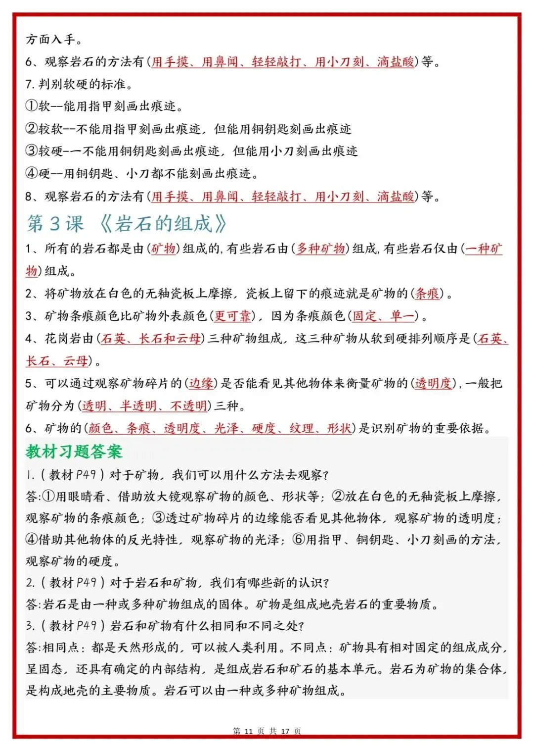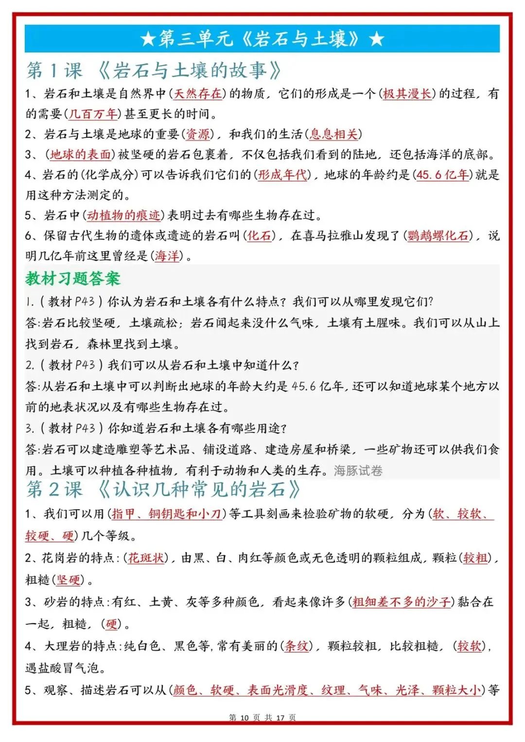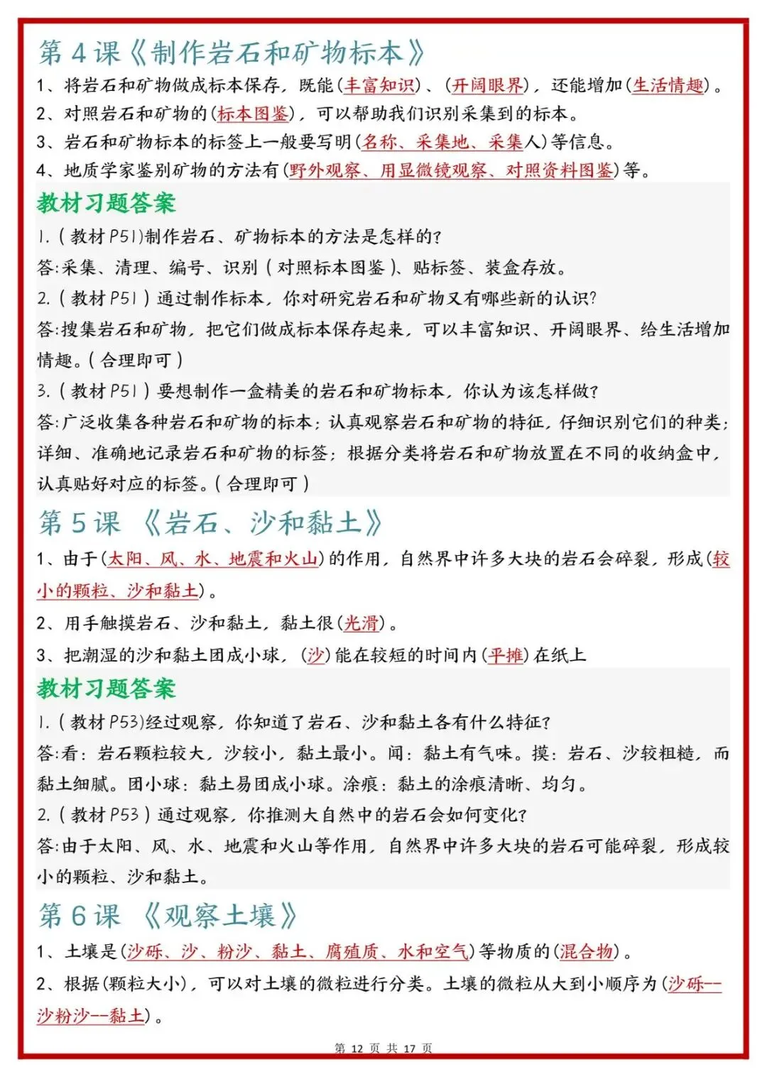 教科版四年级下册科学《1-3单元期中高频考点及教材习题答案》,电子版可打印。包含完整知识点汇总,紧扣教材考点,梳理电路、植物生长、岩石与土壤核心内容,重点清晰、重难点突出。,排版清晰,方便孩子考前梳理知识、查漏补缺,夯实基础提升成绩,家长老师都能用的实用复习资料。