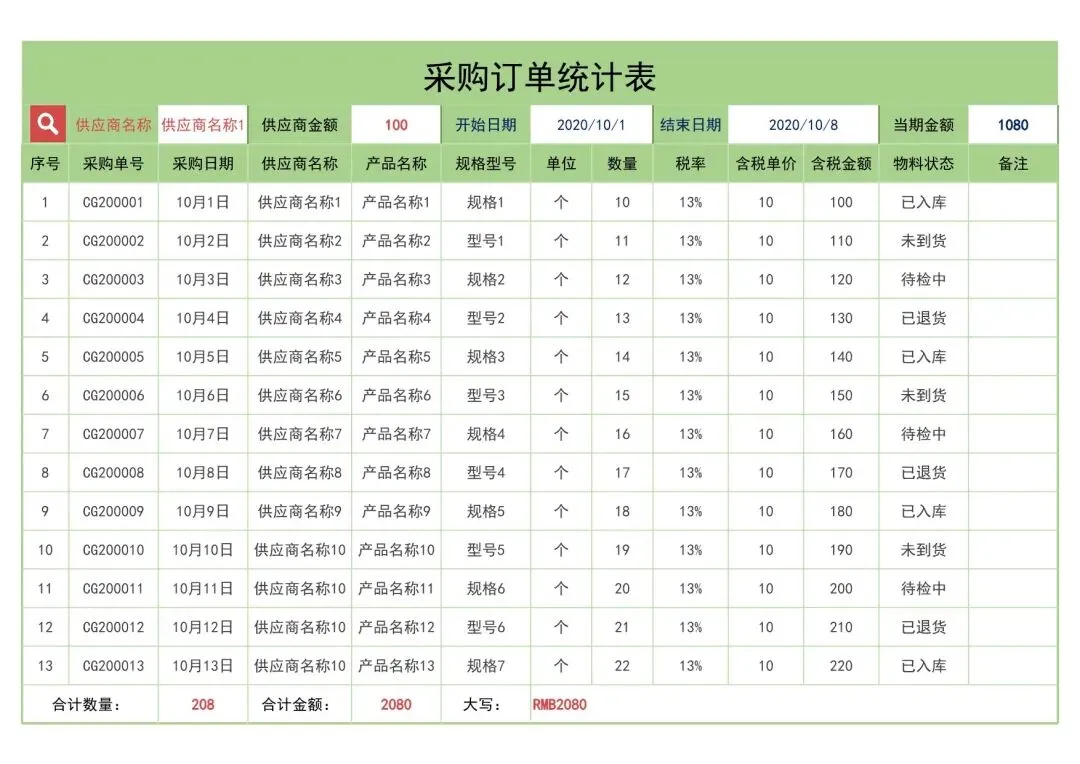 回复关键词“采购统计表”领取!