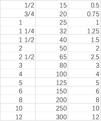 材料汇总表匹配材料编码表,一边用公称直径,一边用英制管径,于是有了本文。