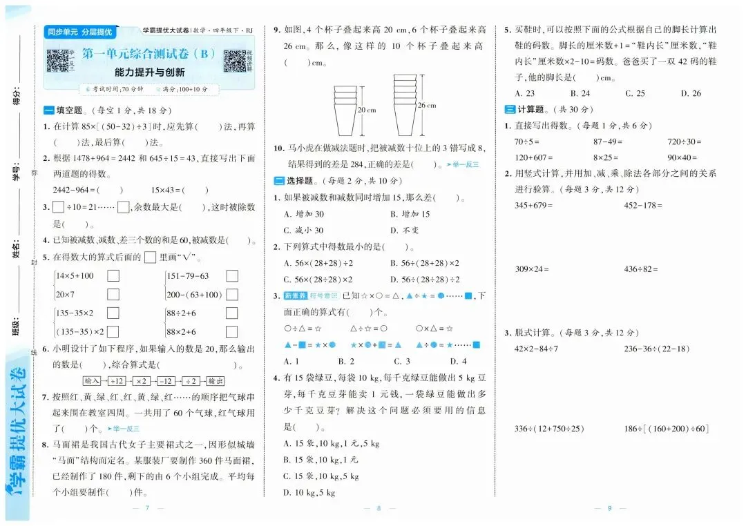 部分试卷及答案预览