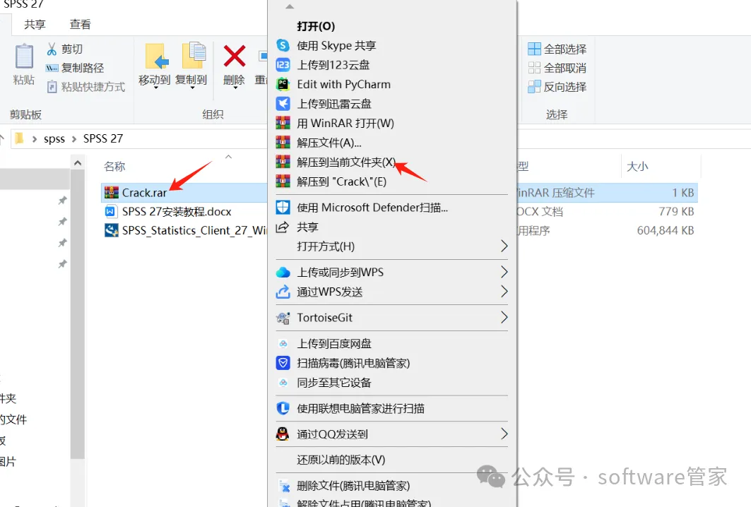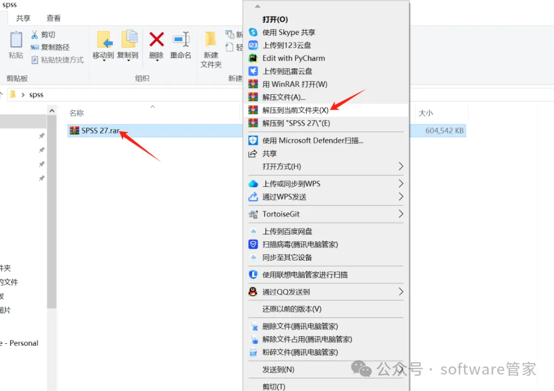 1.鼠标选中“SPSS 27.rar”右击解压到当前文件夹