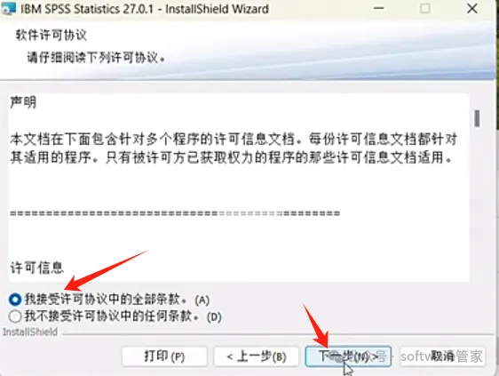 5. 选择“我接受许可协议中的全部条款”,点击“下一步”
