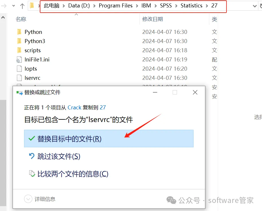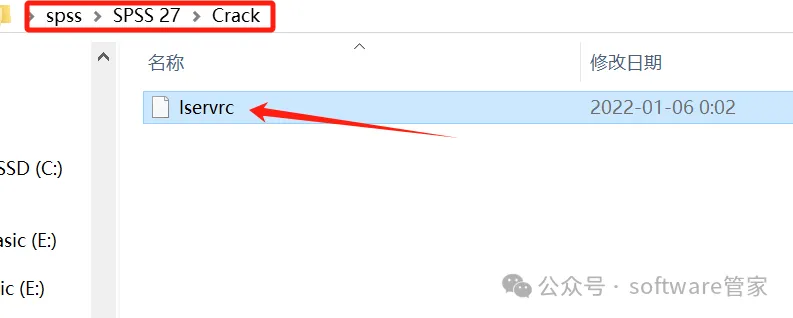 12. 回到第2步找到解压完成的 “Crack”文件夹,双击打开,复制“lservrc”