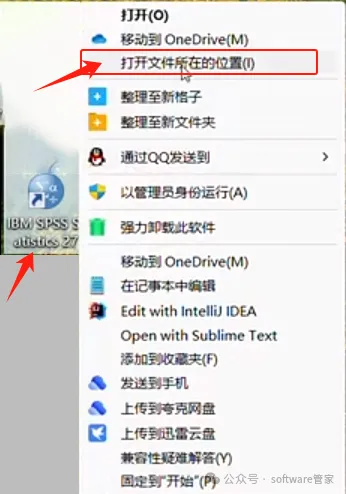 13.回到桌面,找到“IBM SPSS Statistics 27”选中,右键选择“打开文件所在的位置”