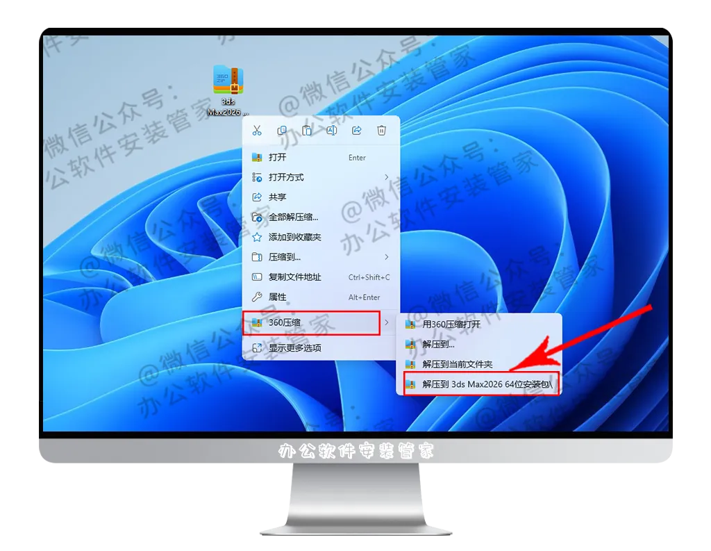 1.找到并选择已下载好的 【3ds Max2026 64位安装包】 压缩包并进行解压操作