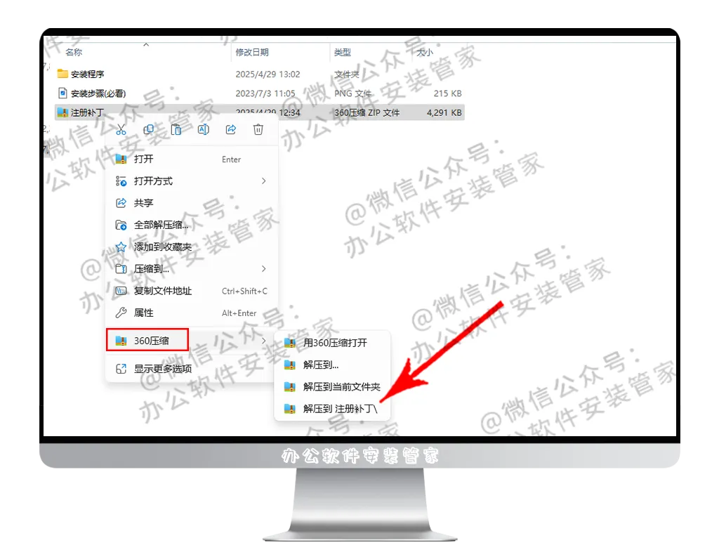 15.选中:【注册补丁】右键解压