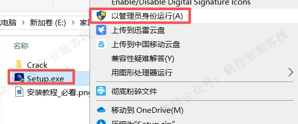 3、选中文件“setup”鼠标右键管理员身份运行。
