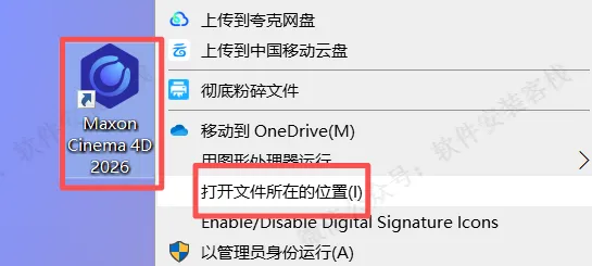 12、在桌面上选中Maxon Cinema 4D 2026鼠标右键,点击打开文件所在位置