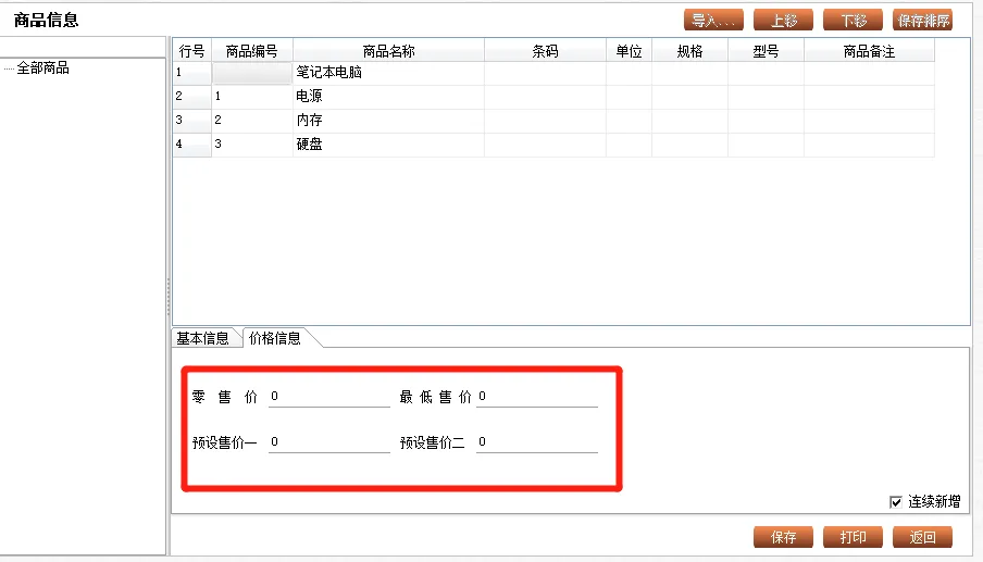 比如说打开商品信息,可以看到,通过录入一些必填项(带星的),和一些非必填项,填完后能看到大概的详细信息。