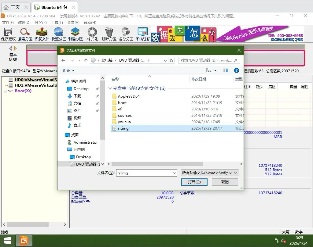 pe系统打开dg分区软件载入虚拟磁盘文件