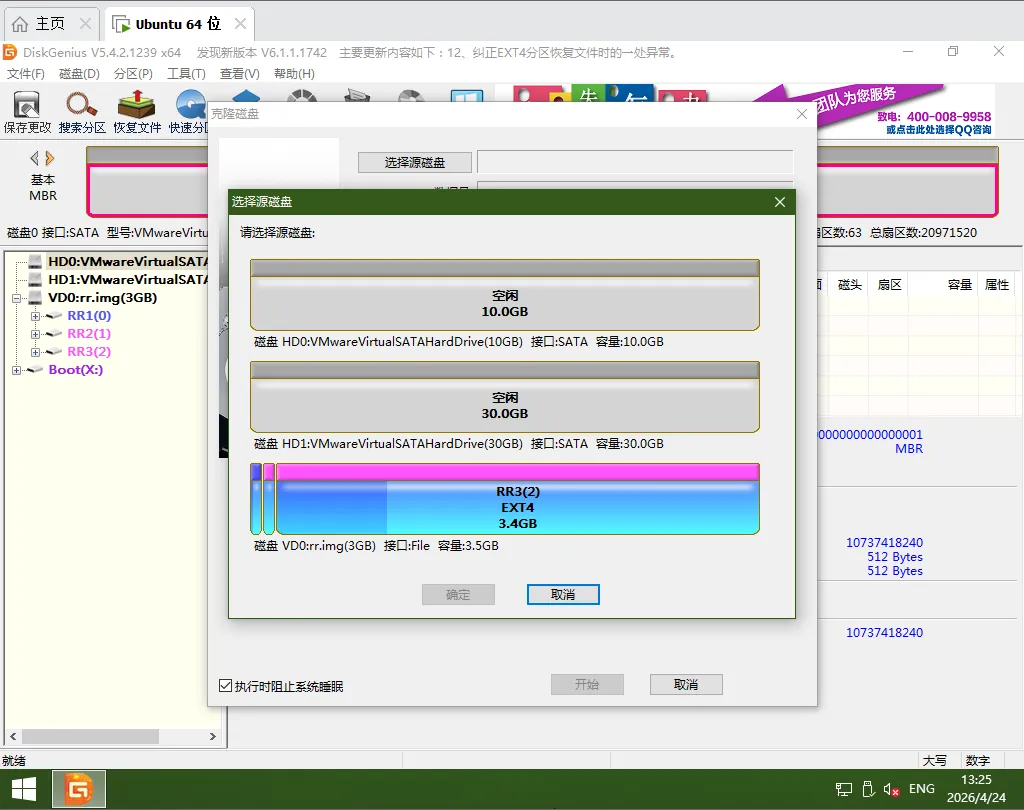 工具选择克隆硬盘,源磁盘选择我们刚刚打开的虚拟磁盘,目标磁盘就是我们需要写入的硬盘,可以用一个小的硬盘,只做引导系统。