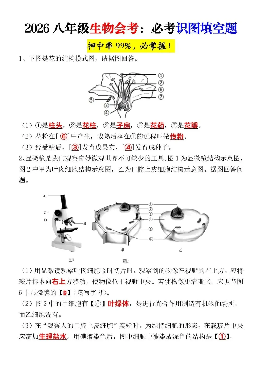 2026八年级生物会考:必考识图填空题(可打印),押中率99%,必掌握!初中生日常老师今天整理了2026八年级生物会考:必考识图填空题(可打印),押中率99%,必掌握!电子版阅览初中生配套学习教辅如何领取这个电子版资料