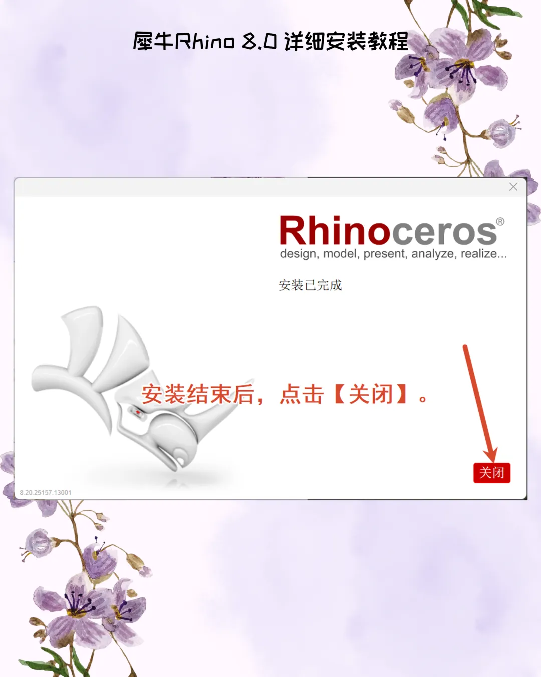 3. 结束向导:点击现在安装,进度完成后点击关闭。