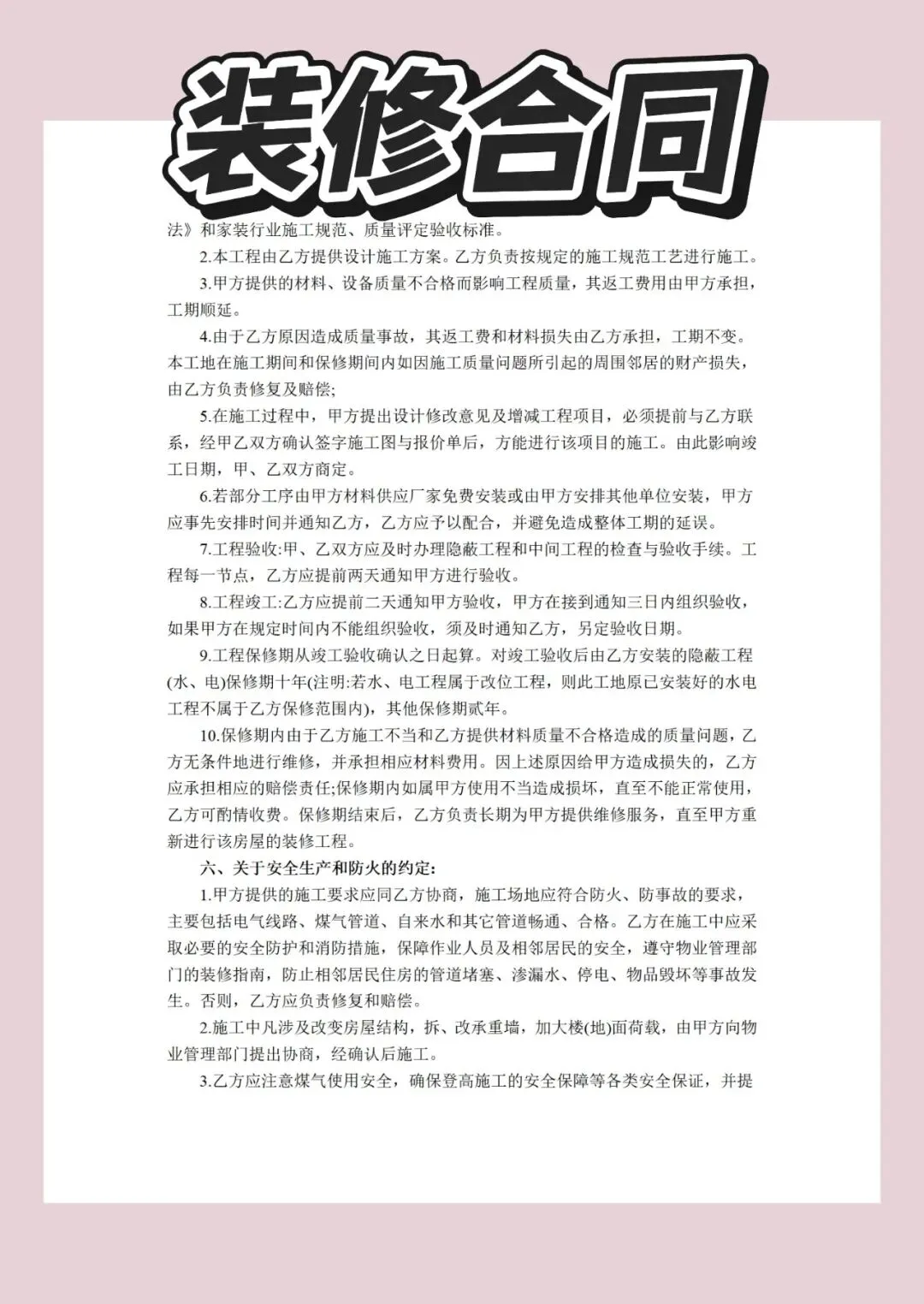 本文内容分享装修合同模版