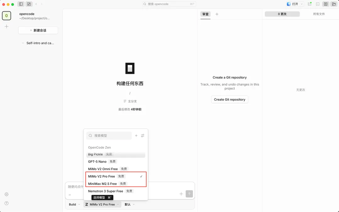 2)Opencode:建议优先选择MiMo V2 Pro Free,其次MiniMax M2.5 Free;