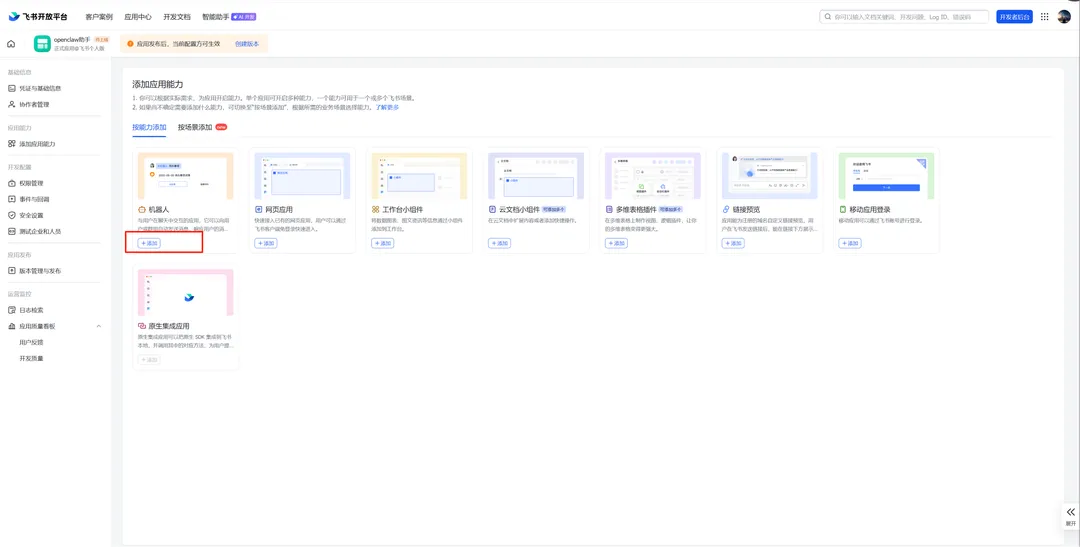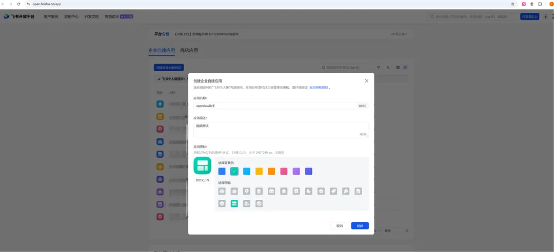 首先需要先在飞书开放平台(https://open.feishu.cn/app),