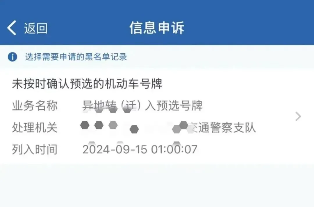 2.如果您是企业用户,需携带相关材料,至当地交管部门车管所窗口提交黑名单申诉申请。具体所需材料,可咨询当地交管“12123”语音热线或车管所电话。