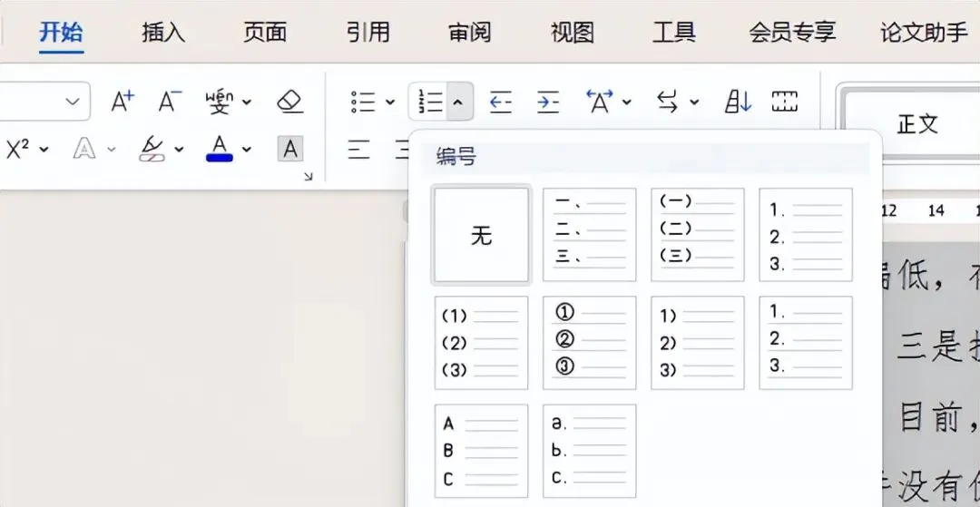 第二种方法:点击编号,在弹出窗口选择取消编号即可。
