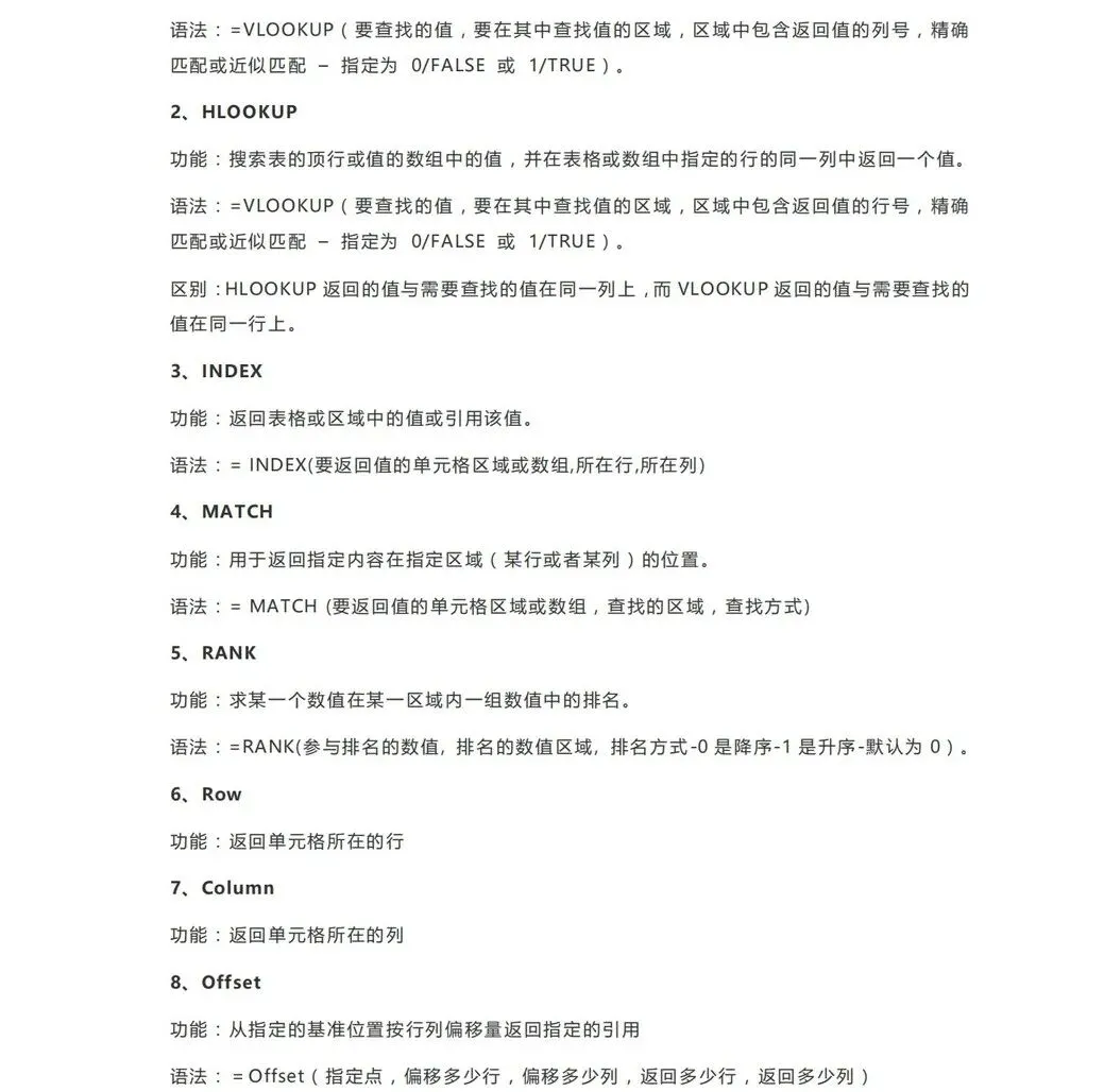多表数据整合总让人头大?VLOOKUP 和 HLOOKUP 来帮你解围!VLOOKUP 按首列查找数据,HLOOKUP 在顶行检索数值,一个横向匹配、一个纵向查找,轻松精准锁定所需信息。INDEX 和 MATCH 组合使用,能灵活获取表格中的数值及对应位置。想给数据排序就用 RANK 函数,再加上 Row、Column、Offset 函数,在行和列的操作上高效发力,处理表格数据更省心。📌 清洗处理类