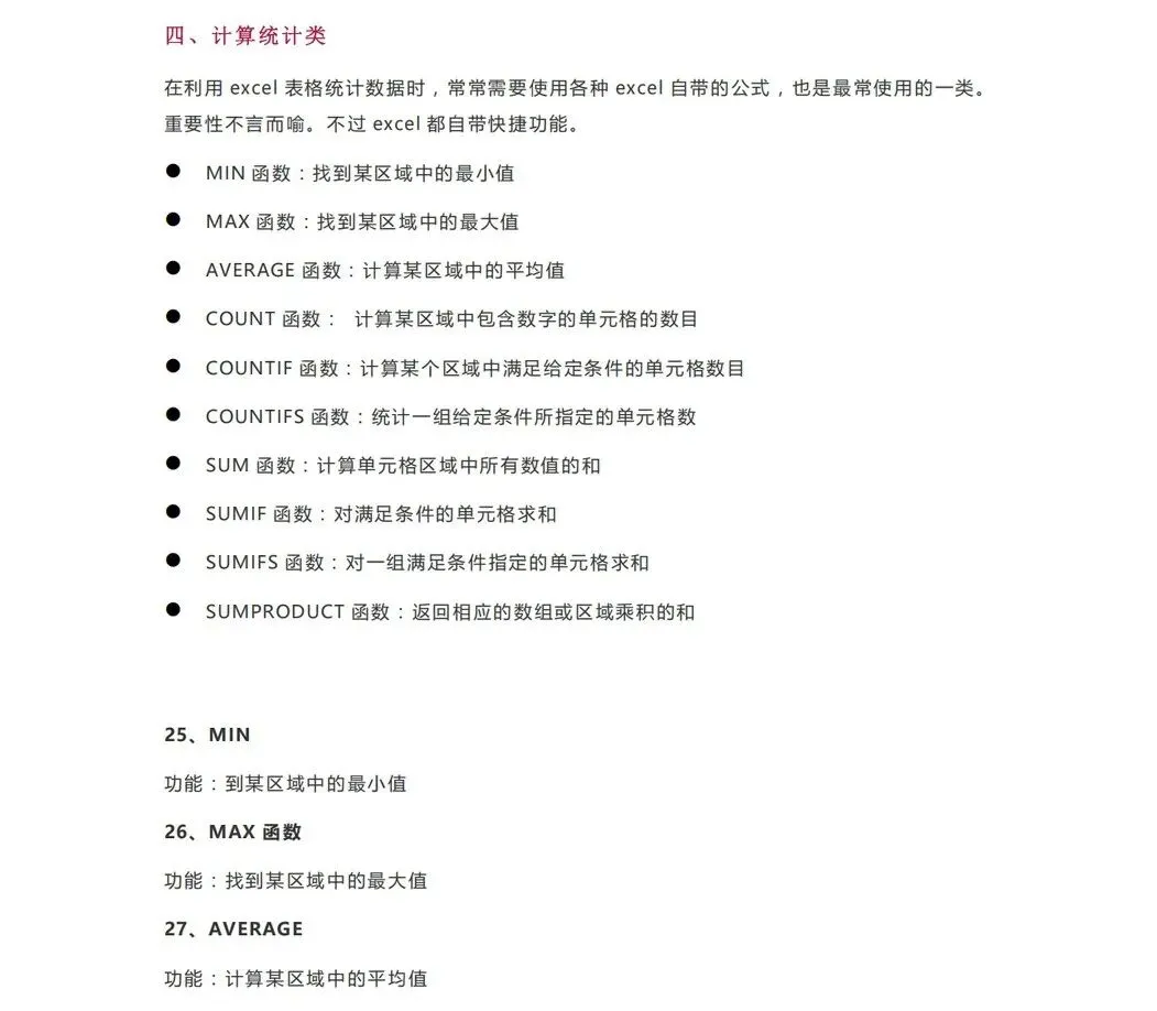 IF 函数可以说是逻辑判断领域的“主力军”,根据设定的条件返回不同结果,轻松判断数据是否符合要求。AND 和 OR 函数专门用于多条件判断,“并且”“或者”的逻辑轻松掌控,复杂数据筛选再也不用犯愁。📌 计算统计类