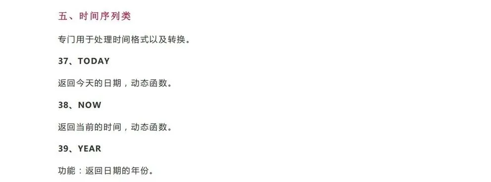 这类函数可是数据分析的核心工具,缺一不可!MIN、MAX、AVERAGE 能快速筛选出数据的最值和平均值,COUNT 系列函数(COUNT、COUNTIF、COUNTIFS)可统计指定单元格的数量,SUM 系列函数(SUM、SUMIF、SUMIFS)负责计算数据总和。SUMPRODUCT 用于计算数组的乘积和,Stdev 可求出数据标准差,Substotal 实现数据汇总,Int 和 Round 能完成数据取整操作,满足各类统计需求。📌 时间序列类