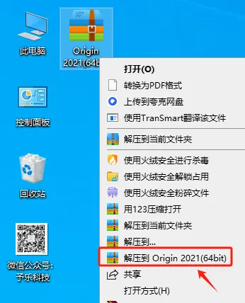 鼠标右击“Origin 2021(64bit)”压缩文件(win11及以上系统需先点击显示更多“选项”)[选择将文件压缩到Origin 2021(64bit)]