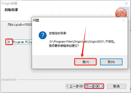 修改路径地址字符C以设定软件的安装目录(如替换为D代表D盘安装),点击“下一步”,确认选择“是”。