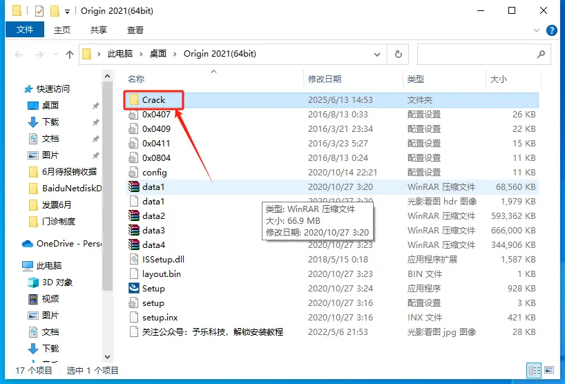 开启解压得到的包内的【Origin2021(64-bit)】目录之下的【crack】子目录。