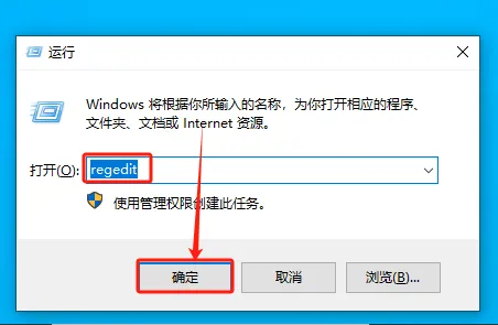 按下【win R】组合键,在弹出的对话框中输入“regedit”,之后点击【确定】按钮。