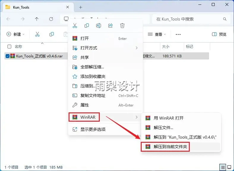 1. 右键点击已下载的压缩文件,选择【解压至当前目录】