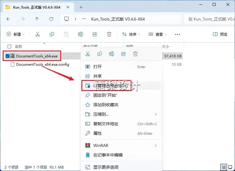 3.右键【DocumentTools x64】选择【以管理员身份运行】