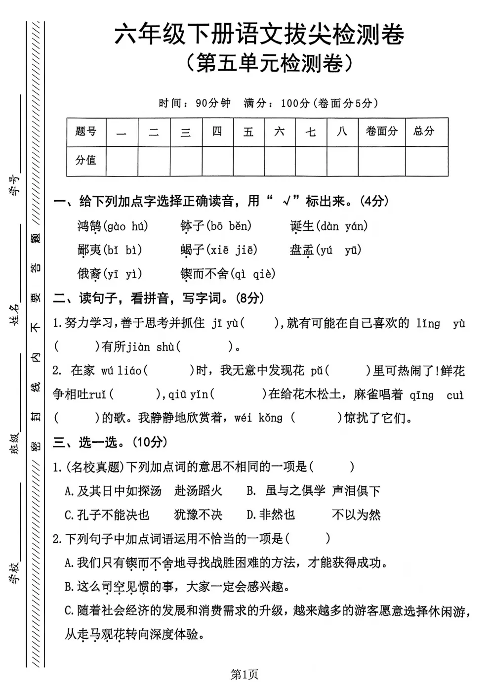 🌟今天给家长们分享的是26春六年级下册人教部编版语文《第五单元测试卷》共3套(附答案)高清电子版可打印,需要的家长抓紧领取一份给孩子打印🖨️出来,让孩子练一练吧✍🏻欢迎分享到班级群或朋友圈,方便家长打印出来助力孩子高效学习!
