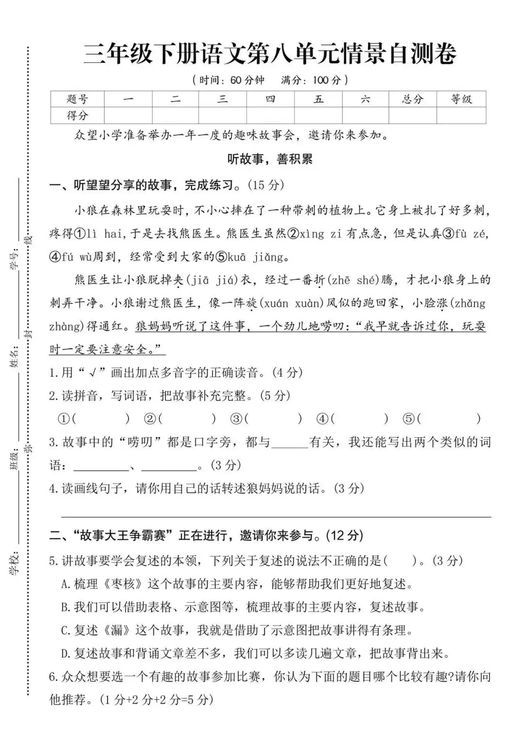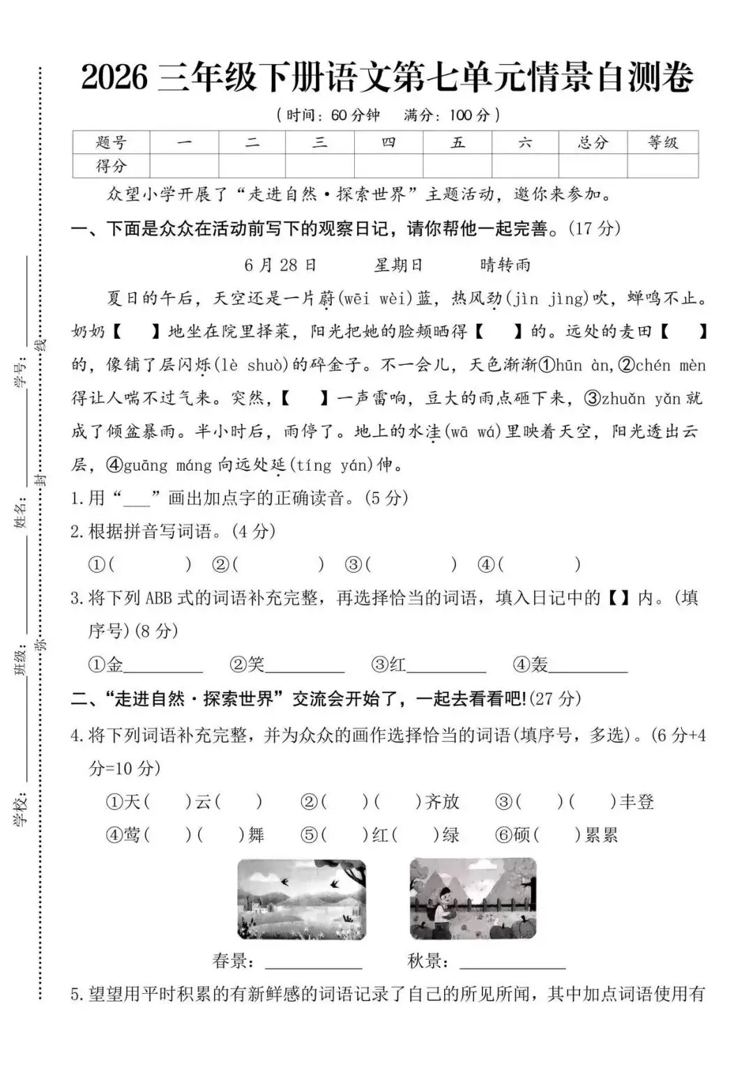 大家好我是白菜学库;今天跟大家分享的是;26春人教部编版三年级下册语文《1-8单元素养评估卷+期中期末素养评估卷》共10套(附答案)含作文格 提供电子版,支持打印和下载。