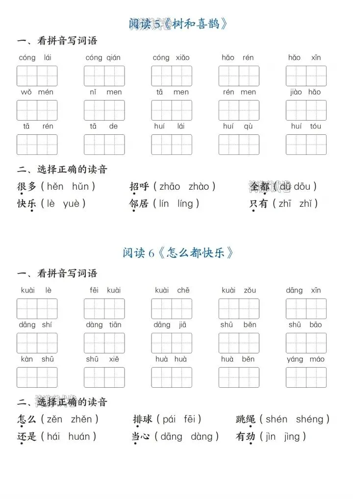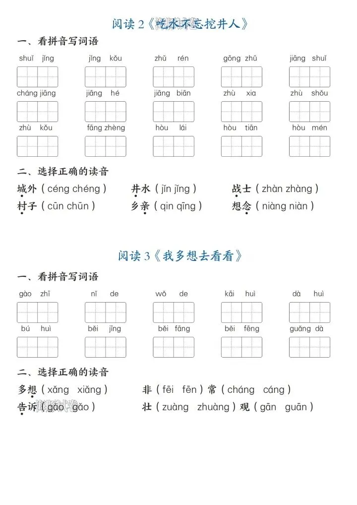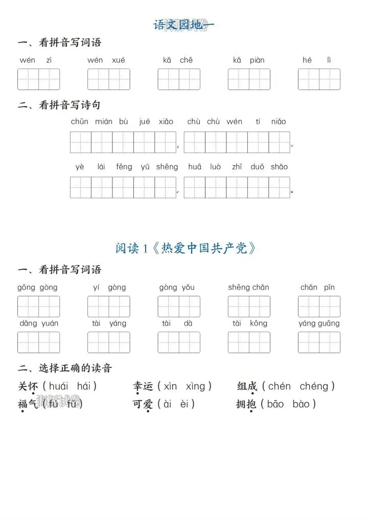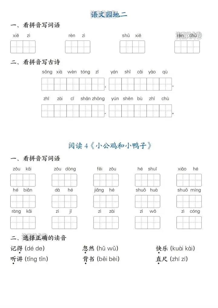 【免费分享】一年级下册语文看拼音写词语(电子版可打印)