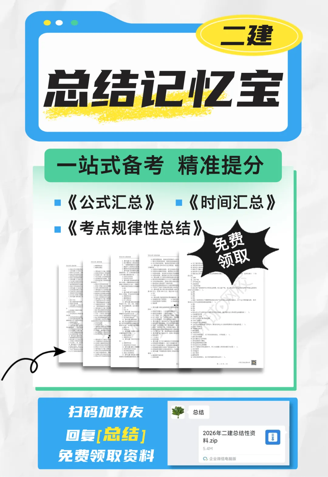 这份【二建总结性资料】,专为临考冲刺量身打造,核心涵盖三大刚需内容: