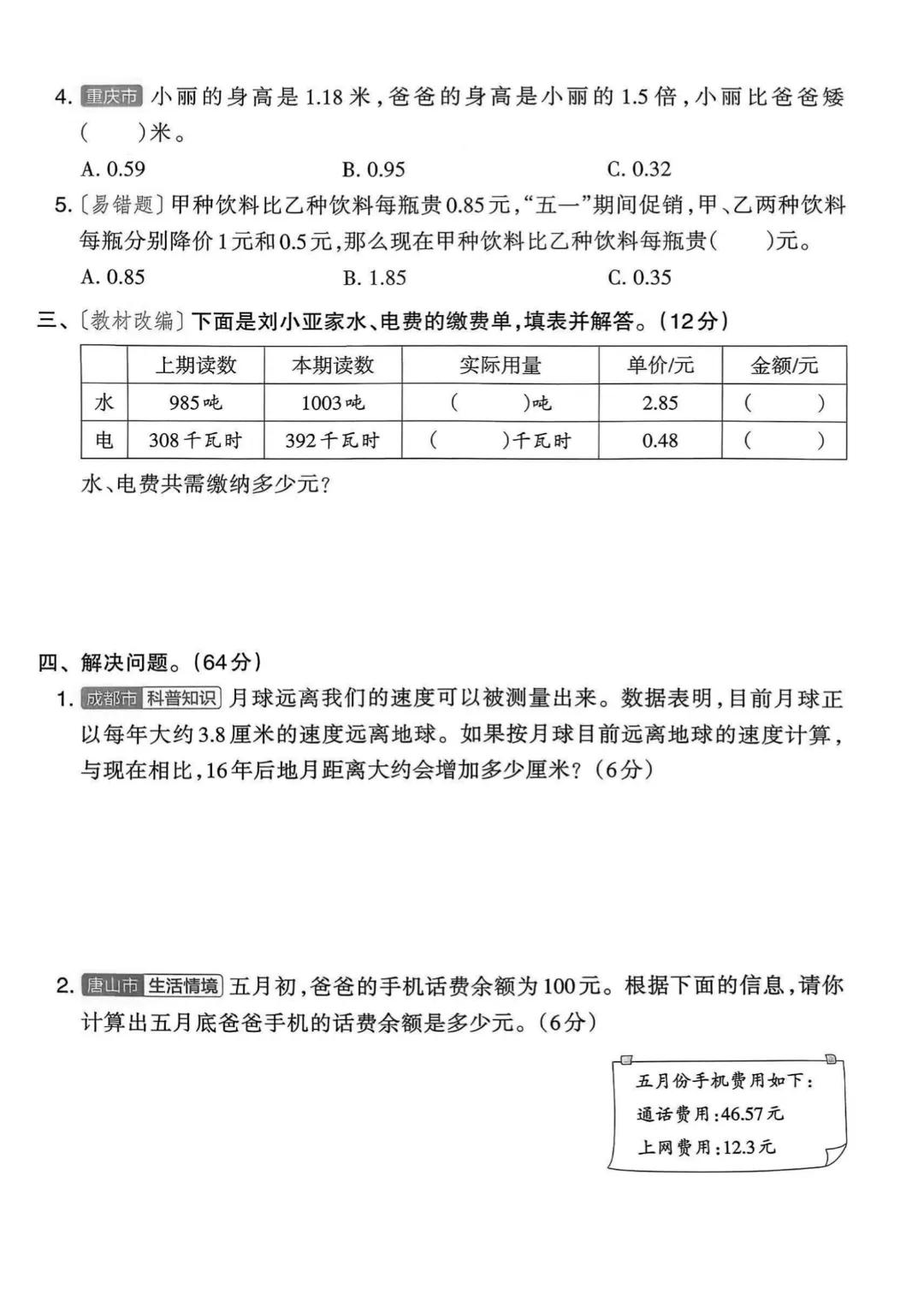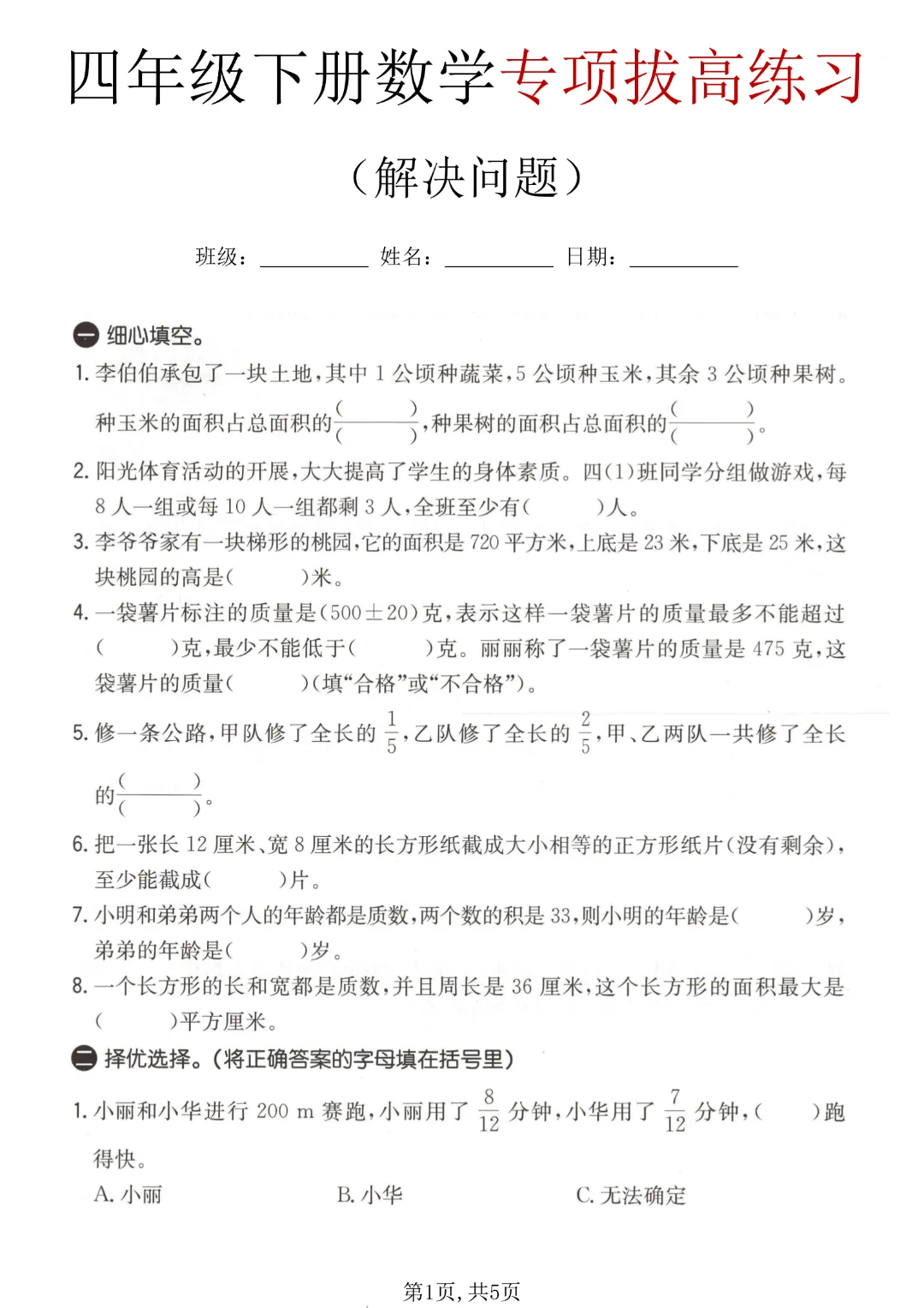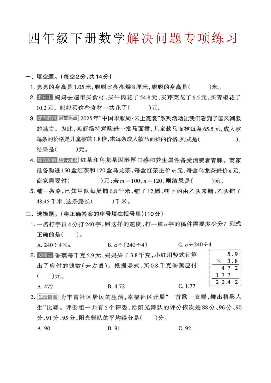 今天给大家分享的是:【2026春新版四年级下册数学】【通用版】解决问题专项练习3套带答案|完整高清电子版可打印