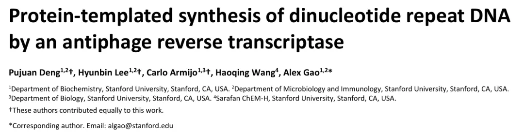 标题:Protein-templated synthesis of dinucleotide repeat DNA by an antiphage reverse transcriptase