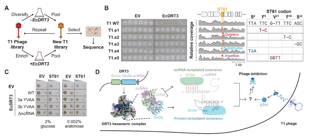 研究者们深入解析了来自大肠杆菌的DRT3系统,主要做了以下几件事: