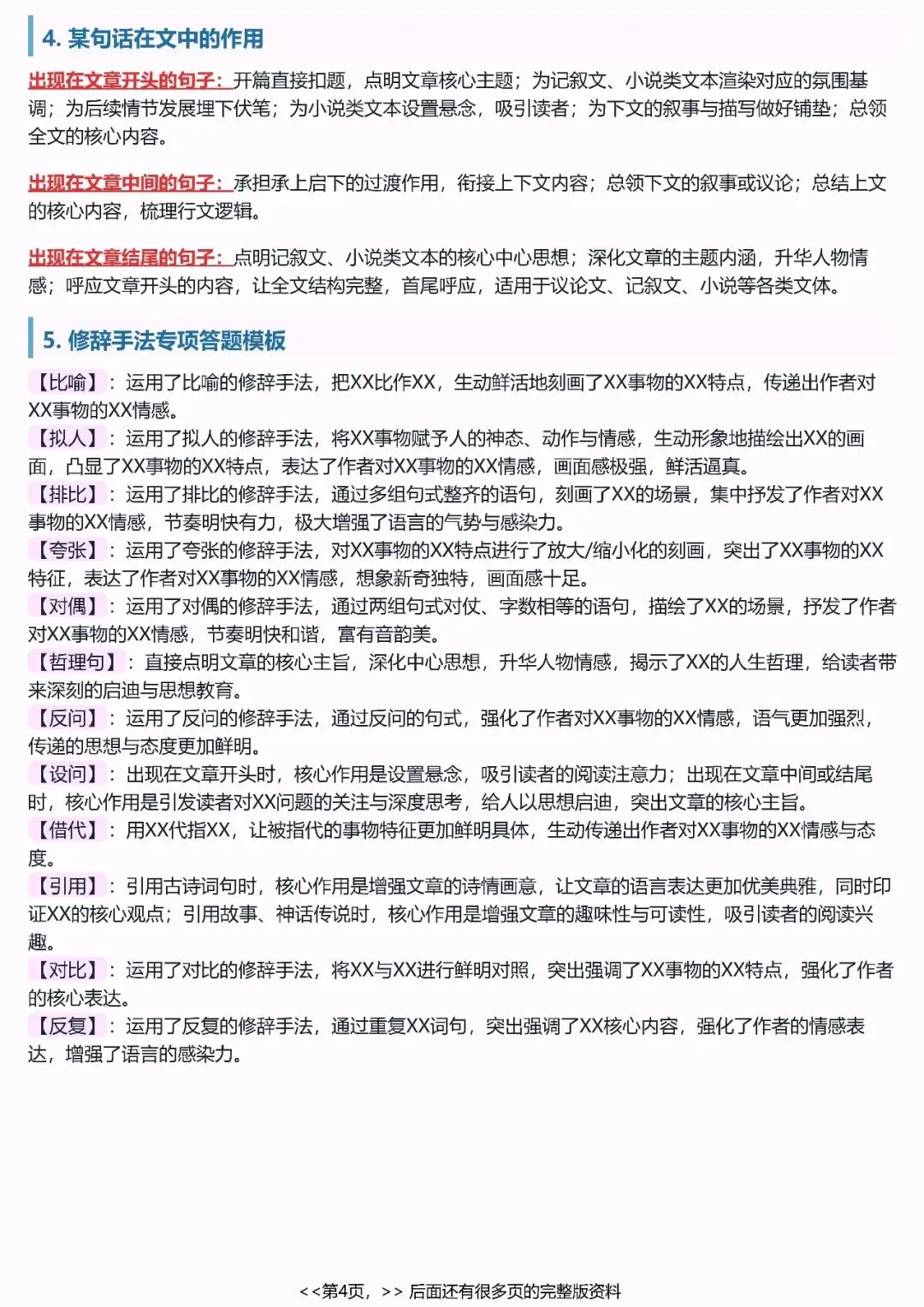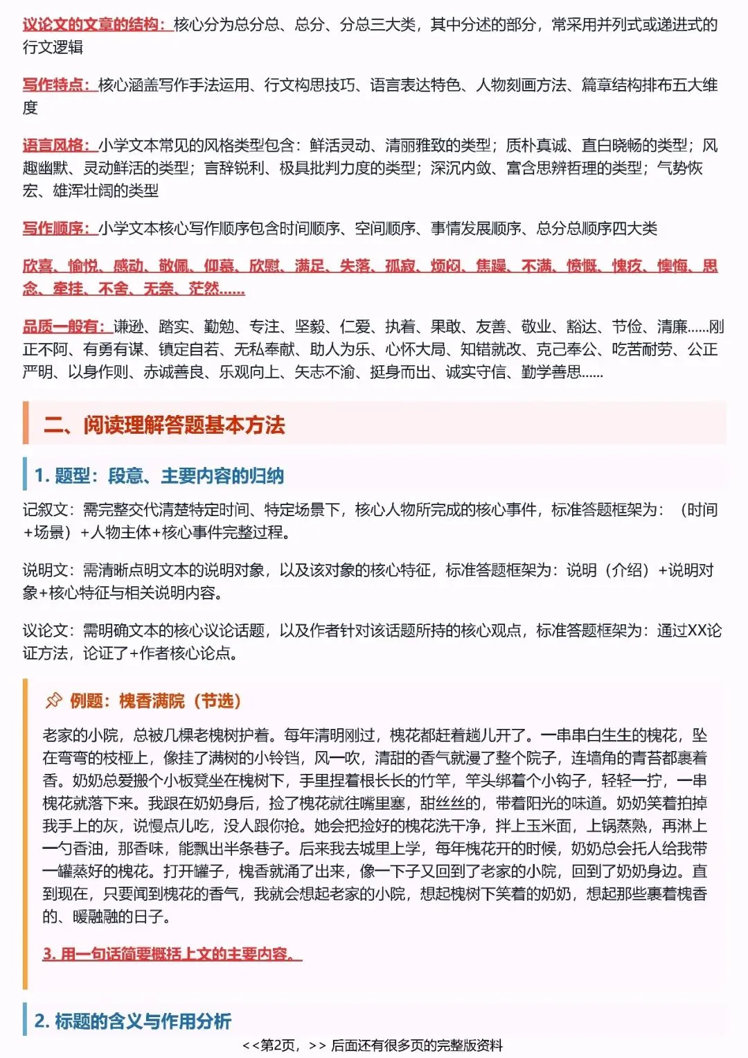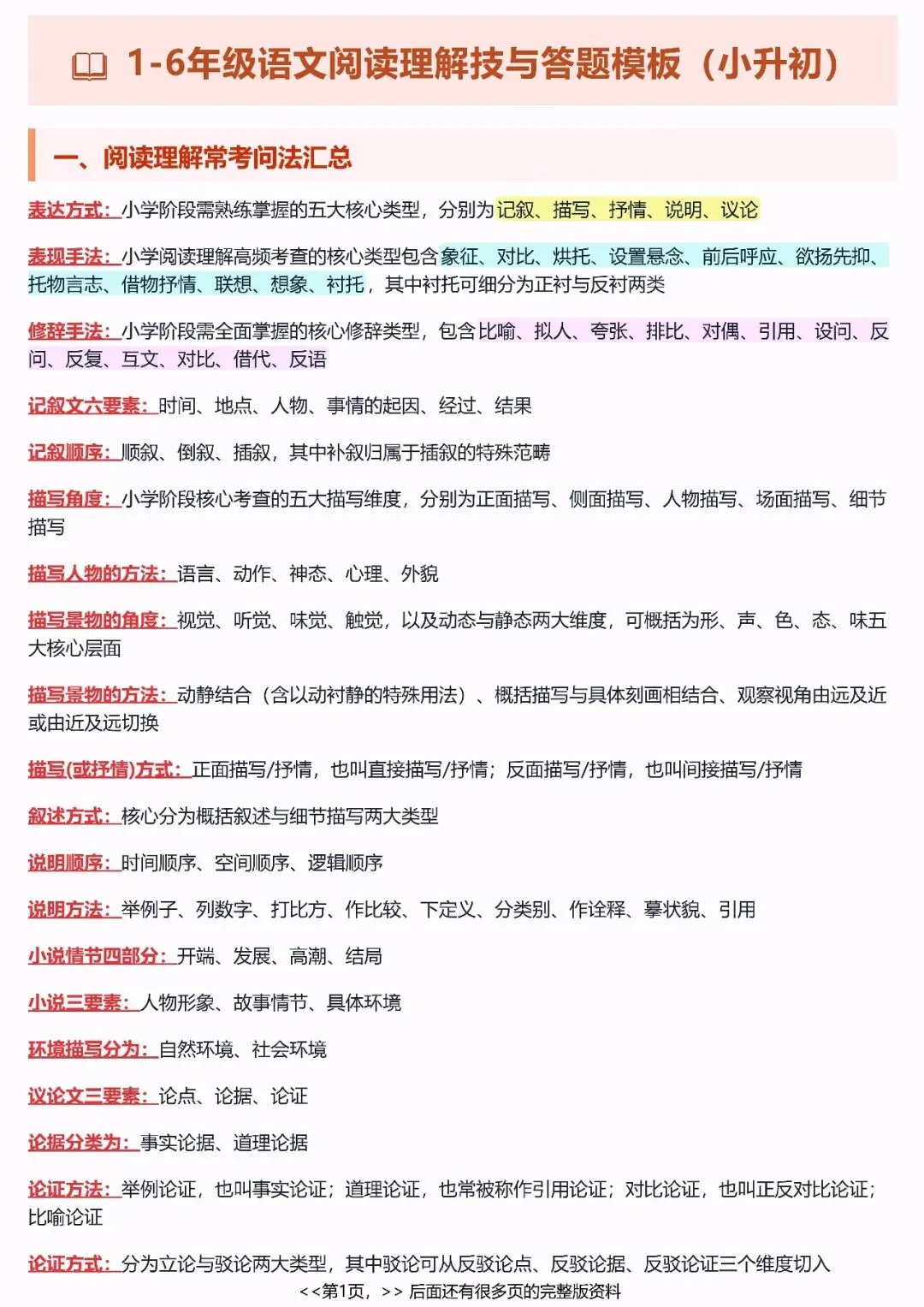 大家好,我是多雅妈妈,今天分享的是26新六年级语文阅读理解与答题模板小升初,有答案可打印